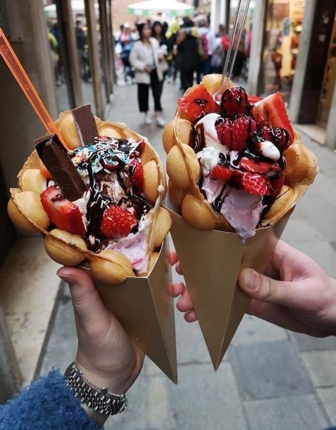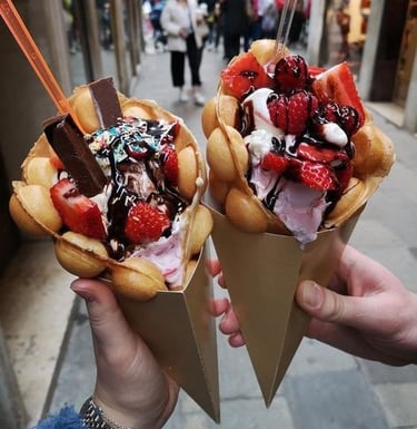 Indulge in the ultimate dessert experience with our Ice Cream Bubble Waffles! Each creation starts with a hot made-to-order bubble waffle, perfectly crisp on the outside and soft on the inside, ready to hold a generous scoop (or two!) of our creamy, artisan ice cream. Topped with an array of delicious treats like fresh fruit, candy, cookies, or drizzles of chocolate and caramel, these bubble waffles are a fun and decadent way to enjoy dessert. Customize yours to satisfy any craving or try one of our signature combinations! A delightful treat that’s both photo-worthy and utterly satisfying."